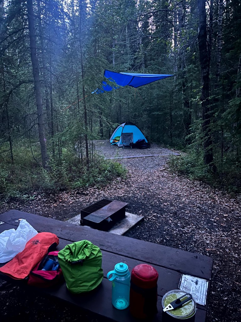 The bus dropped me off a few miles from the camp area at 9 PM. No taxis. No shuttles. Just me, a heavy pack, and a long walk ahead. I met a German traveler named Erasmus, staying in the same campground. He offered to walk back with me, but I told him my pack would slow him down—I planned to hitchhike and then he suggested we hitch together as Erasmus had hitchhiked here from Montreal! Being an experienced hitchhiker, I had to decline as hitchhiking alone is much more productive, and I wanted to get settled. I ended up getting picked up by a kind woman named Dana—and beat Erasmus back.