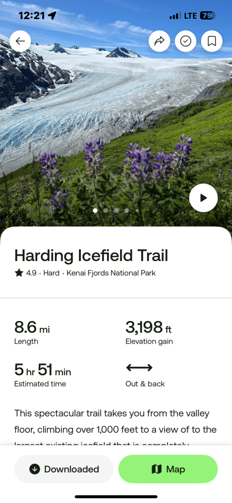 I woke up knowing the weather would be perfect—a rare gift in Alaska. It felt like the right day to take on the big hike that had been calling my name: the HARDING ICEFIELD TRAIL. It’s an 8.6-mile trek with a 3,200-foot climb.