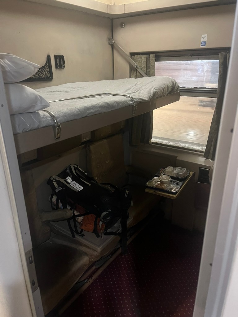 Finally at the train station I paid $90 for the 9-hour trip and chose to save $30 by agreeing to share the cabin with a stranger.