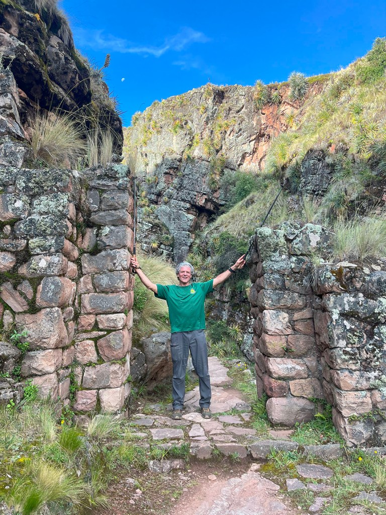 Now in the correct direction we eventually got below timberline to a spectacular canyon where we passed through beautiful vegetation surrounded by a meandering stream. We came across 2 stone entrances built by INCANS 600 odd years ago. Our trail hugged the mountains edge and These stone entrances originally had a door and were perched in a way that their design blocked intruders. Interesting!